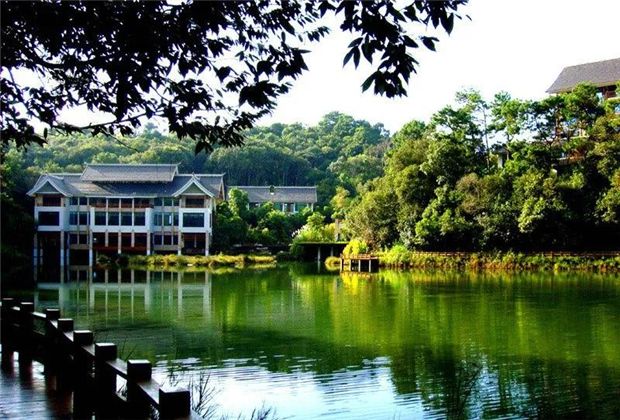相傳三國時諸葛亮帶兵南征,曾在這里洗刷戰馬,故此而得佳名。數匹泥塑戰馬身姿神駿,踏于湖面之上,既有雄壯之美,又有“馬踏飛燕”般的輕盈。洗馬湖依山傍城,山后思茅松翠綠挺拔,山前茶園連綿起伏,一派生機盎然之景。
